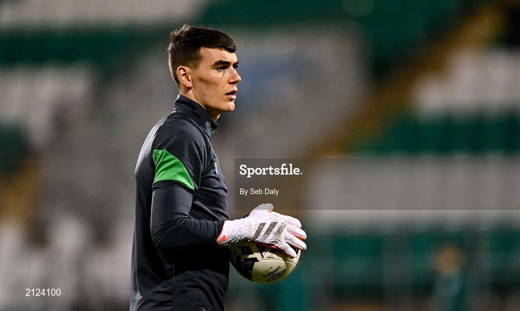 16 November 2021; Republic of Ireland goalkeeper Luke McNicholas before the UEFA European U21 Championship qualifying group A match between Republic of Ireland and Sweden at Tallaght Stadium in Dublin. Photo by Seb Daly/Sportsfile