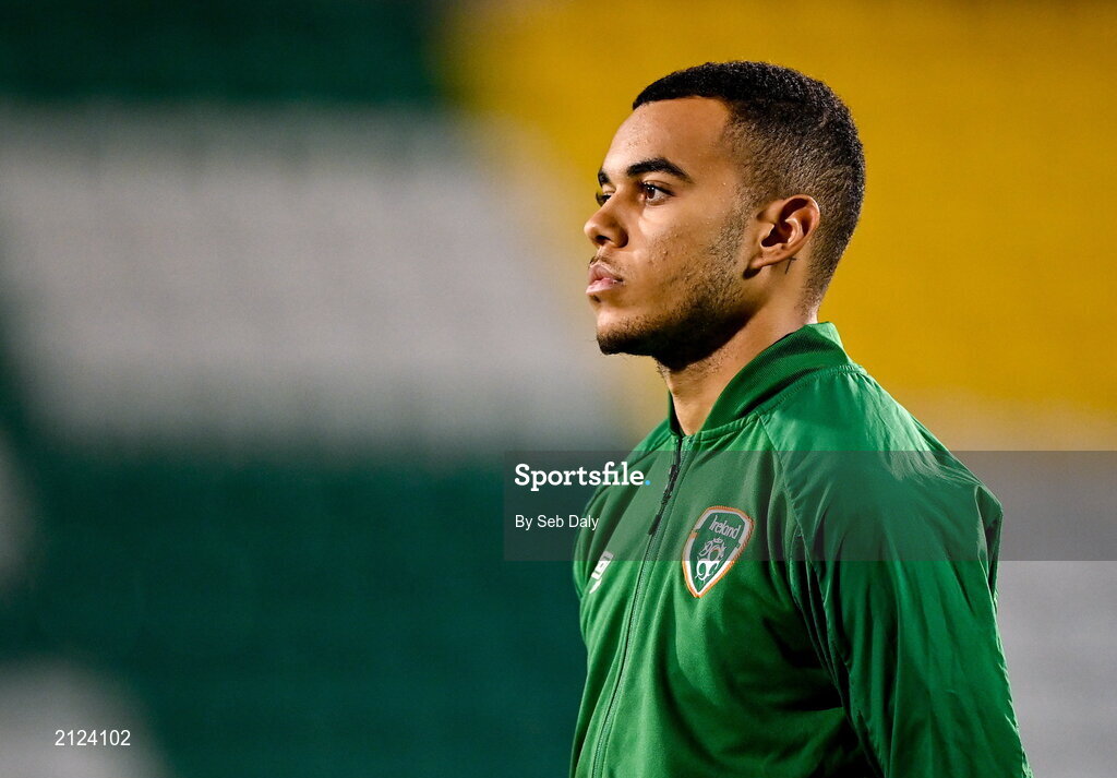16 November 2021; Tyreik Wright of Republic of Ireland during the UEFA European U21 Championship qualifying group A match between Republic of Ireland and Sweden at Tallaght Stadium in Dublin. Photo by Seb Daly/Sportsfile