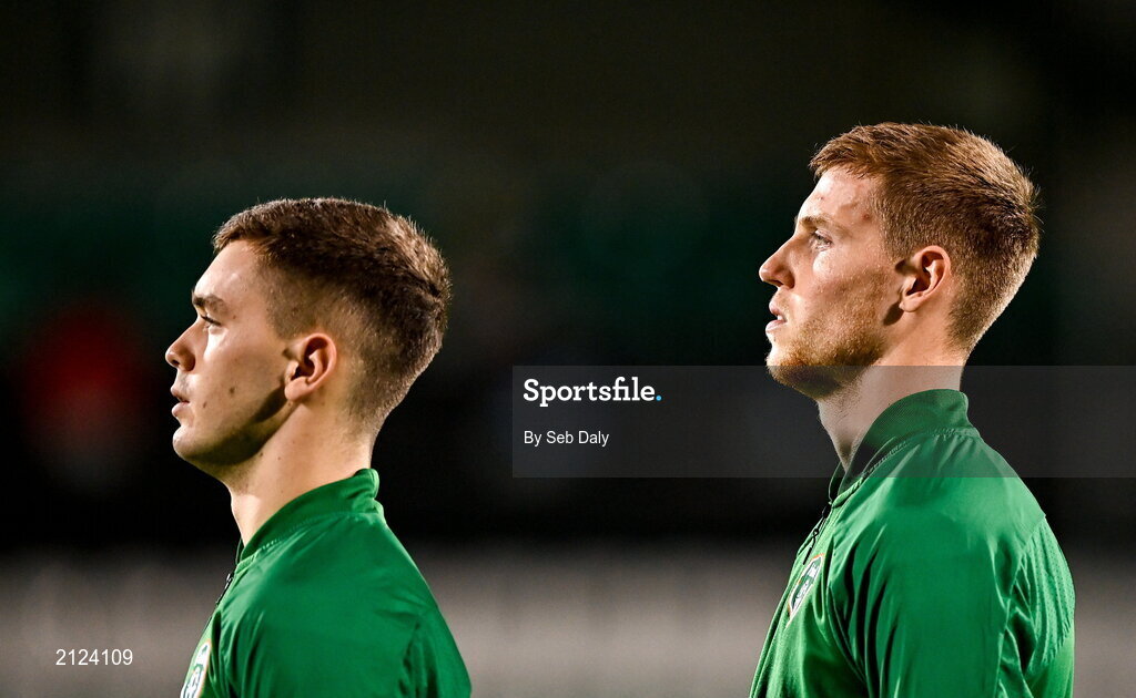 16 November 2021; Mark McGuinness of Republic of Ireland, right, during the UEFA European U21 Championship qualifying group A match between Republic of Ireland and Sweden at Tallaght Stadium in Dublin. Photo by Seb Daly/Sportsfile