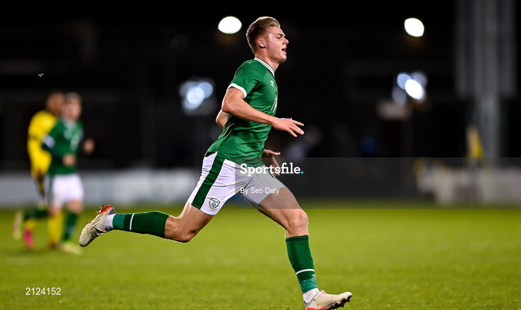 16 November 2021; Evan Fergusson of Republic of Ireland during the UEFA European U21 Championship qualifying group A match between Republic of Ireland and Sweden at Tallaght Stadium in Dublin. Photo by Seb Daly/Sportsfile