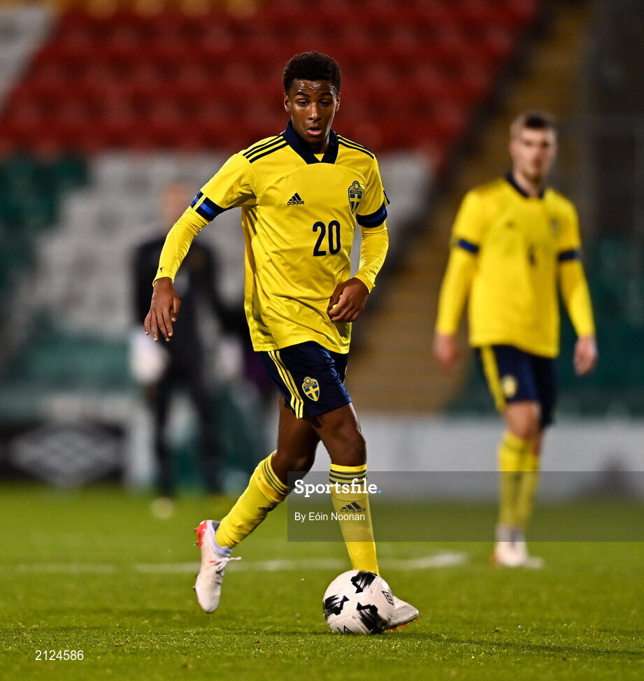 16 November 2021; Bilal Hussein of Sweden during the UEFA European U21 Championship qualifying group A match between Republic of Ireland and Sweden at Tallaght Stadium in Dublin. Photo by Eóin Noonan/Sportsfile