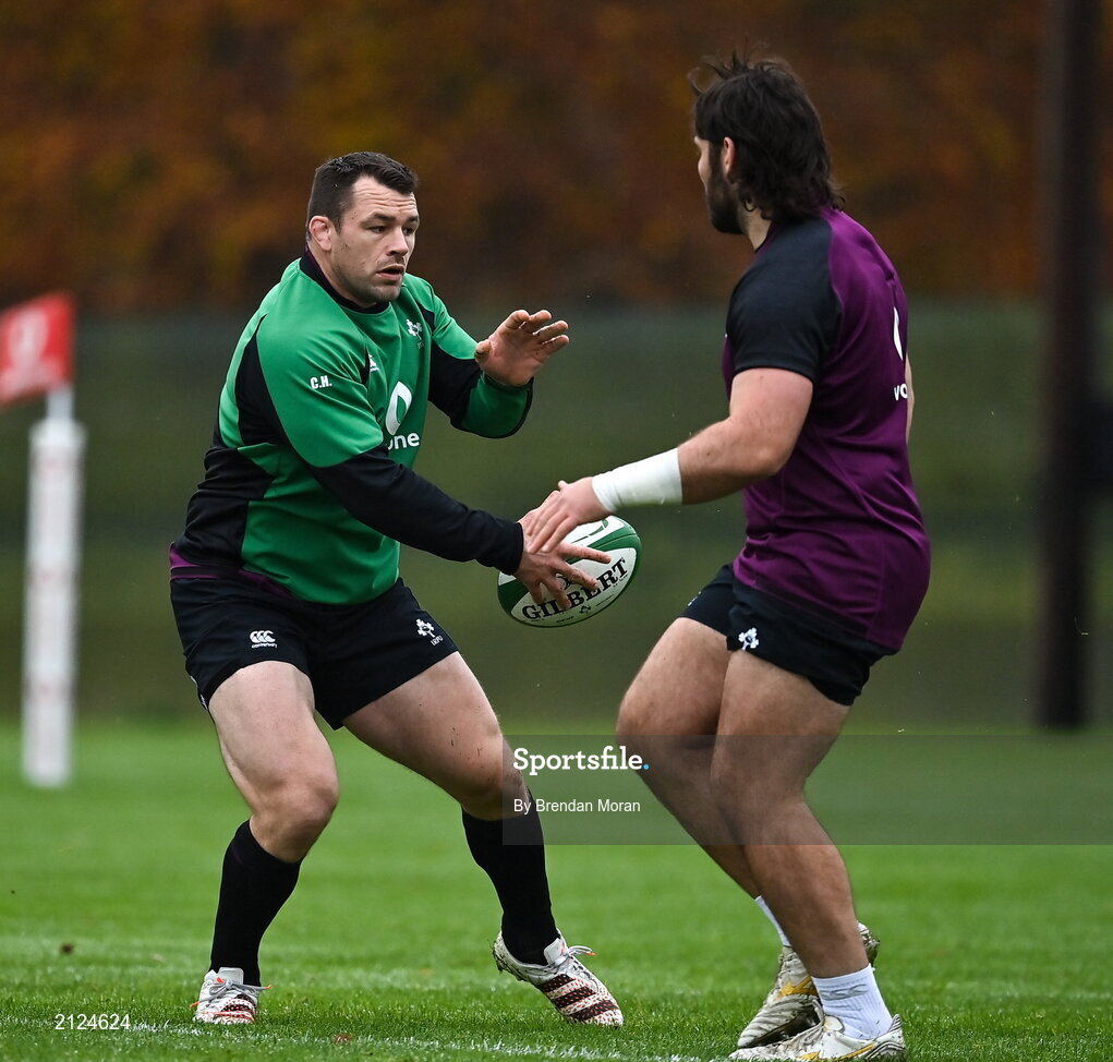 18 November 2021; Cian Healy, left, and Tom O’Toole during Ireland rugby squad training at Carton House in Maynooth, Kildare. Photo by Brendan Moran/Sportsfile