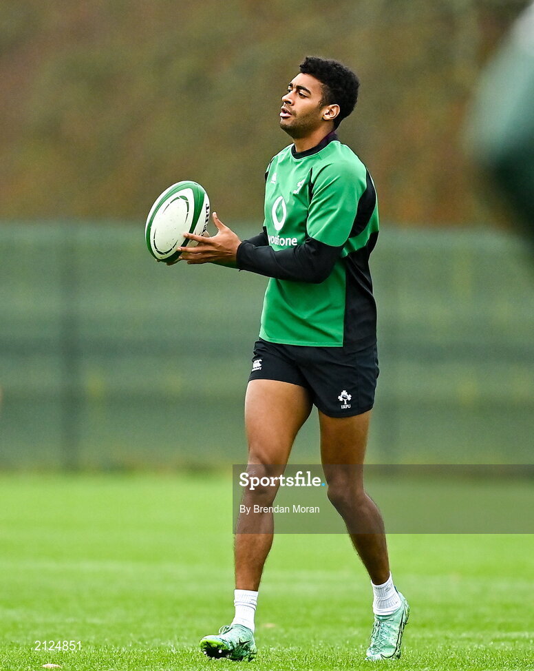 18 November 2021; Robert Baloucoune during Ireland rugby squad training at Carton House in Maynooth, Kildare. Photo by Brendan Moran/Sportsfile