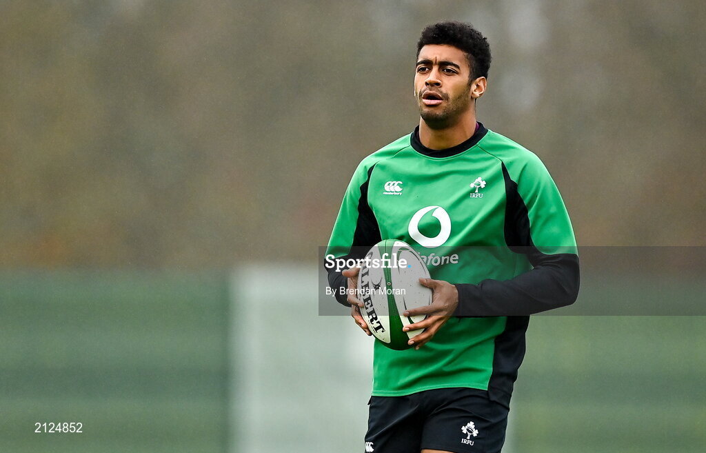 18 November 2021; Robert Baloucoune during Ireland rugby squad training at Carton House in Maynooth, Kildare. Photo by Brendan Moran/Sportsfile