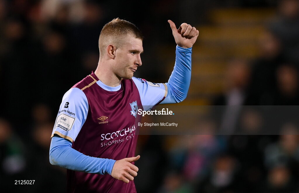 19 November 2021; Mark Doyle of Drogheda United celebrates after scoring his side's first goal, from a penalty, during the SSE Airtricity League Premier Division match between Shamrock Rovers and Drogheda United at Tallaght Stadium in Dublin. Photo by Stephen McCarthy/Sportsfile