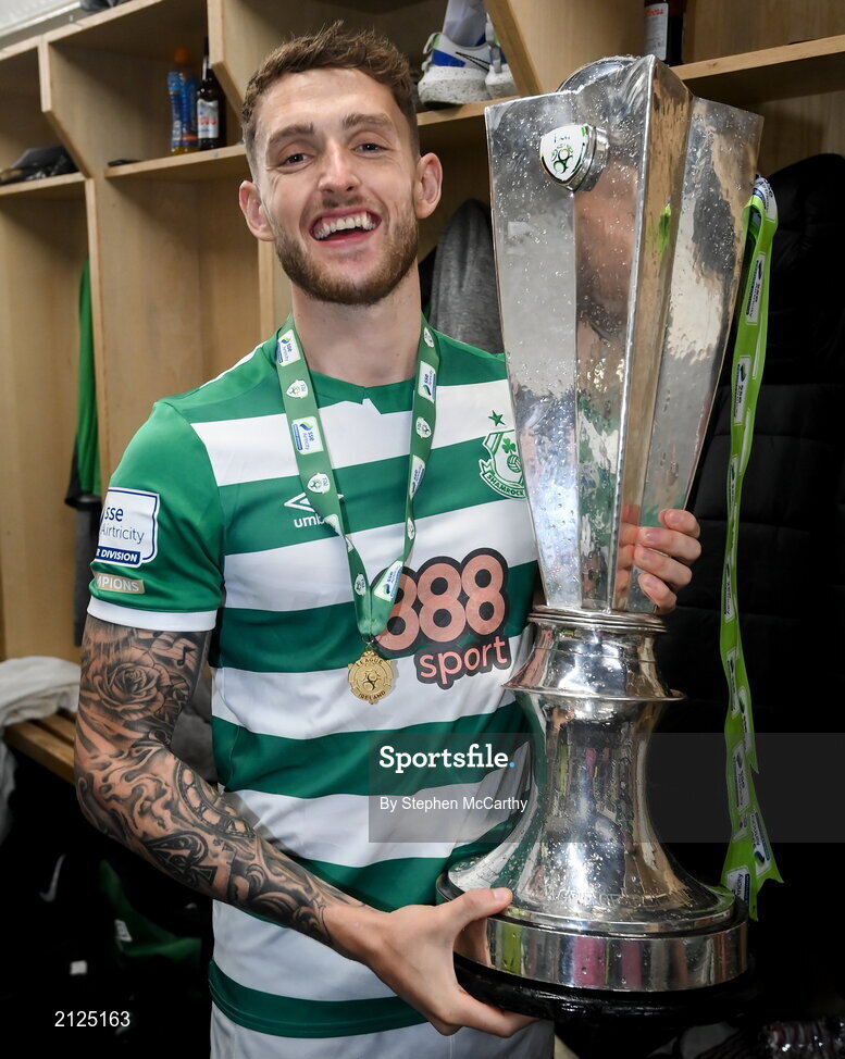 19 November 2021; Lee Grace of Shamrock Rovers celebrates with the SSE Airtricity League Premier Division trophy after their match against Drogheda United at Tallaght Stadium in Dublin. Photo by Stephen McCarthy/Sportsfile