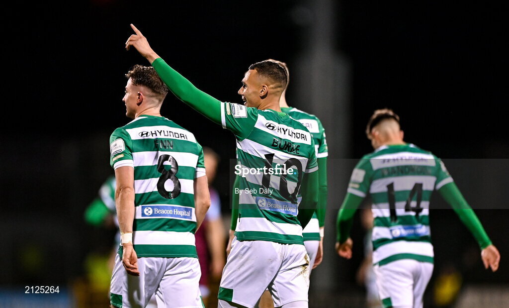 19 November 2021; Graham Burke of Shamrock Rovers after scoring their side's first goal during the SSE Airtricity League Premier Division match between Shamrock Rovers and Drogheda United at Tallaght Stadium in Dublin. Photo by Seb Daly/Sportsfile