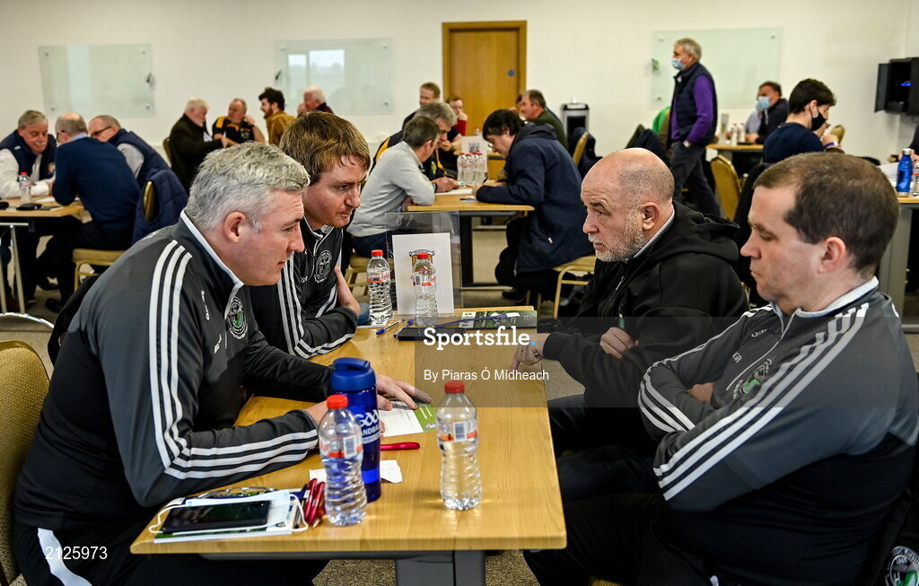 20 November 2021; The Tuar Mhic Éadaigh team, representing Mayo, of Michael Lang, Seán Kearns, Tim Foley and Michéal Coyne during Tráth na gCeist at the Scór Sinsir 2020 All-Ireland Finals at the Connacht GAA Air Dome in Bekan, Mayo. Photo by Piaras Ó Mídheach/Sportsfile