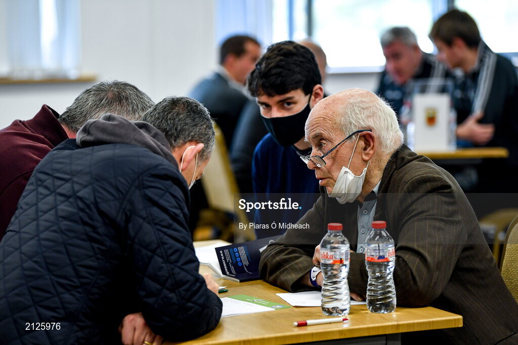 20 November 2021; The Bhulf Tón CLG team, representing Meath of Tony Crawley, Cathal Ó Bric, Cormac Ó Bric and Cathal Lee during Tráth na gCeist at the Scór Sinsir 2020 All-Ireland Finals at the Connacht GAA Air Dome in Bekan, Mayo. Photo by Piaras Ó Mídheach/Sportsfile