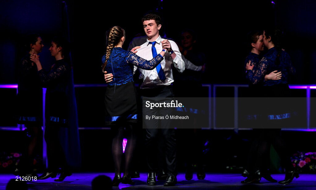 20 November 2021; The Ail Finn team, representing Roscommon and Connacht, of Michael Gunn, Luke Gunn, Sarah Keane, Emily Keane, Ellen Tiernan, Michelle Tarpey, Sylvia Regan and Emma Mulhern during the Rince Seit competition at the Scór Sinsir 2020 All-Ireland Finals at the Connacht GAA Air Dome in Bekan, Mayo. Photo by Piaras Ó Mídheach/Sportsfile