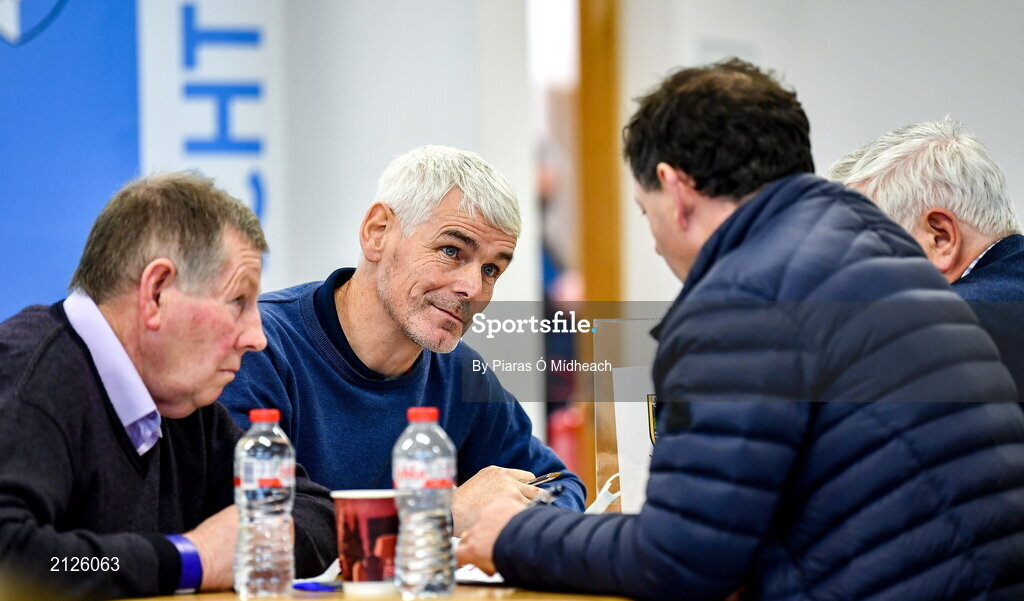 20 November 2021; The Corr Na Féinne team, representing Cavan, of Brian Doyle, Tommy McGibney, Martin Maguire and Michael Dinney during Tráth na gCeist at the Scór Sinsir 2020 All-Ireland Finals at the Connacht GAA Air Dome in Bekan, Mayo. Photo by Piaras Ó Mídheach/Sportsfile