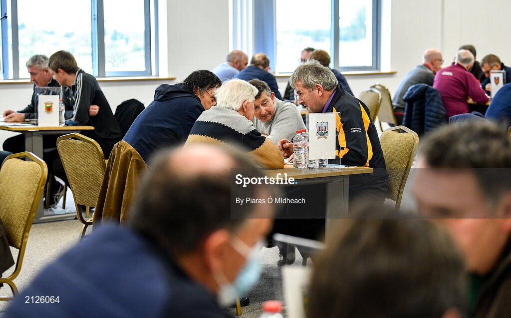 20 November 2021; The Sráid an Mhuilinn team, representing Cork, of Jerry Doody, John Tarrant, Pat Sheehan and Con Healy during Tráth na gCeist at the Scór Sinsir 2020 All-Ireland Finals at the Connacht GAA Air Dome in Bekan, Mayo. Photo by Piaras Ó Mídheach/Sportsfile