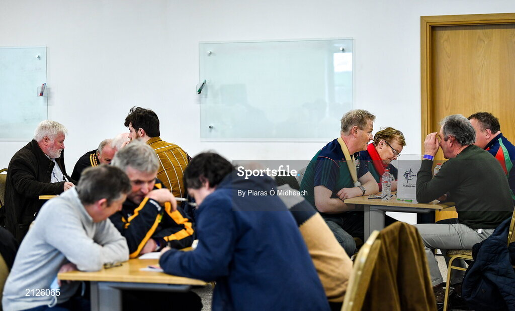 20 November 2021; The Baile an Mhuilinn team, representing Kildare, of Ronan Byrne, Mary Byrne, Noel Dunne and Noel Shannon during Tráth na gCeist at the Scór Sinsir 2020 All-Ireland Finals at the Connacht GAA Air Dome in Bekan, Mayo. Photo by Piaras Ó Mídheach/Sportsfile