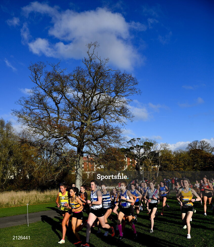 21 November 2021; A general view of action during the Junior Women's event at the Irish Life Health National Cross Country Championships at Santry Demense in Dublin. Photo by Ramsey Cardy/Sportsfile