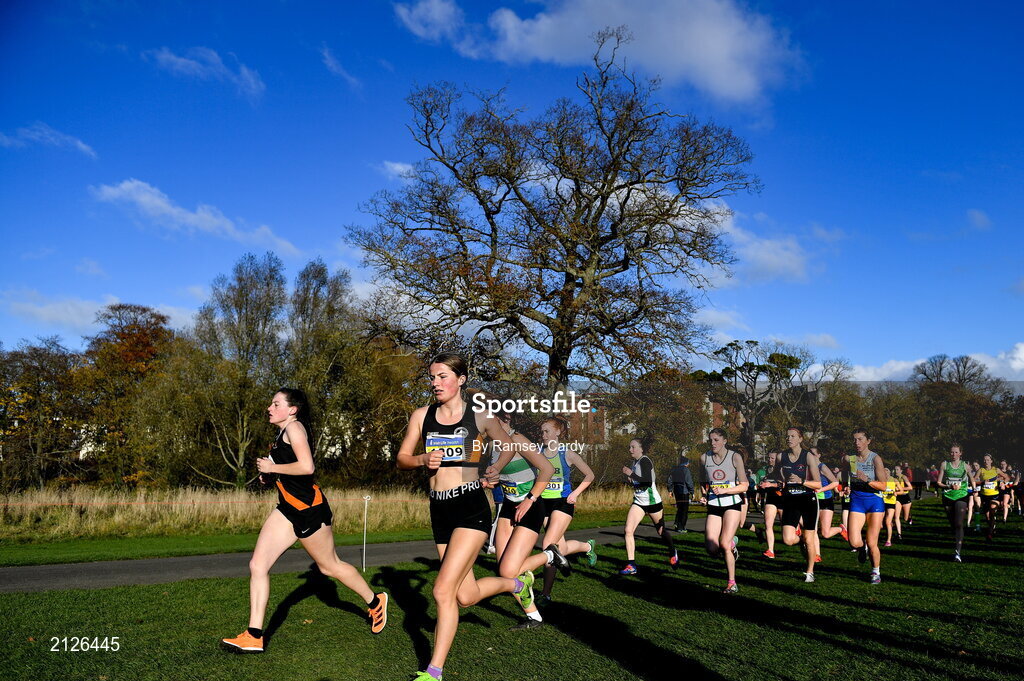 21 November 2021; A general view of action during the Junior Women's event at the Irish Life Health National Cross Country Championships at Santry Demense in Dublin. Photo by Ramsey Cardy/Sportsfile