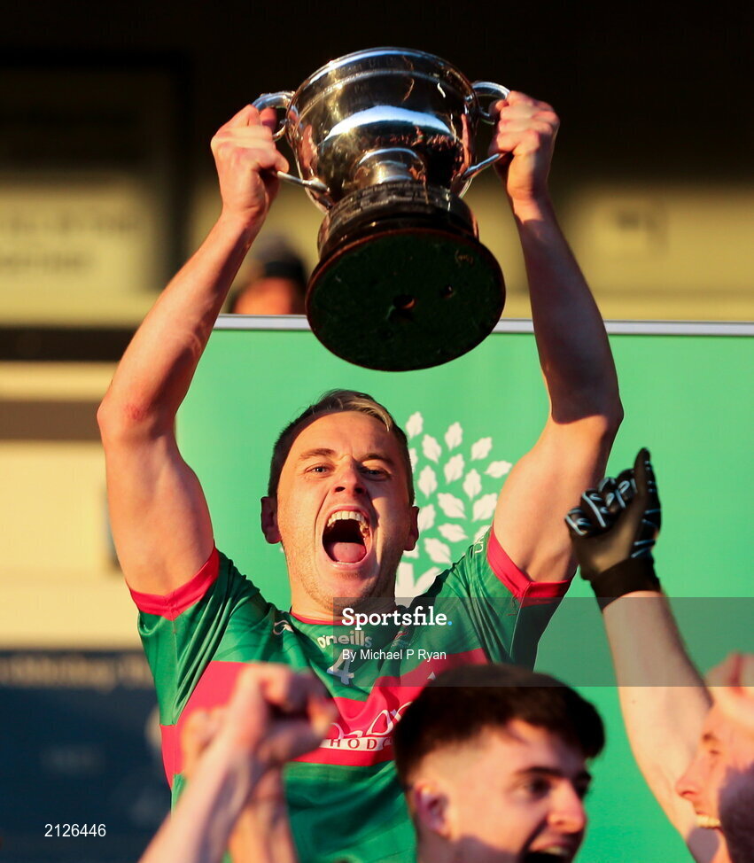 21 November 2021; Loughmore-Castleiney captain Willie Eviston lifts The O'Dwyer Cup after the Tipperary County Senior Club Football Championship Final match between Clonmel Commercials and Loughmore-Castleiney at Semple Stadium in Thurles, Tipperary. Photo by Michael P Ryan/Sportsfile