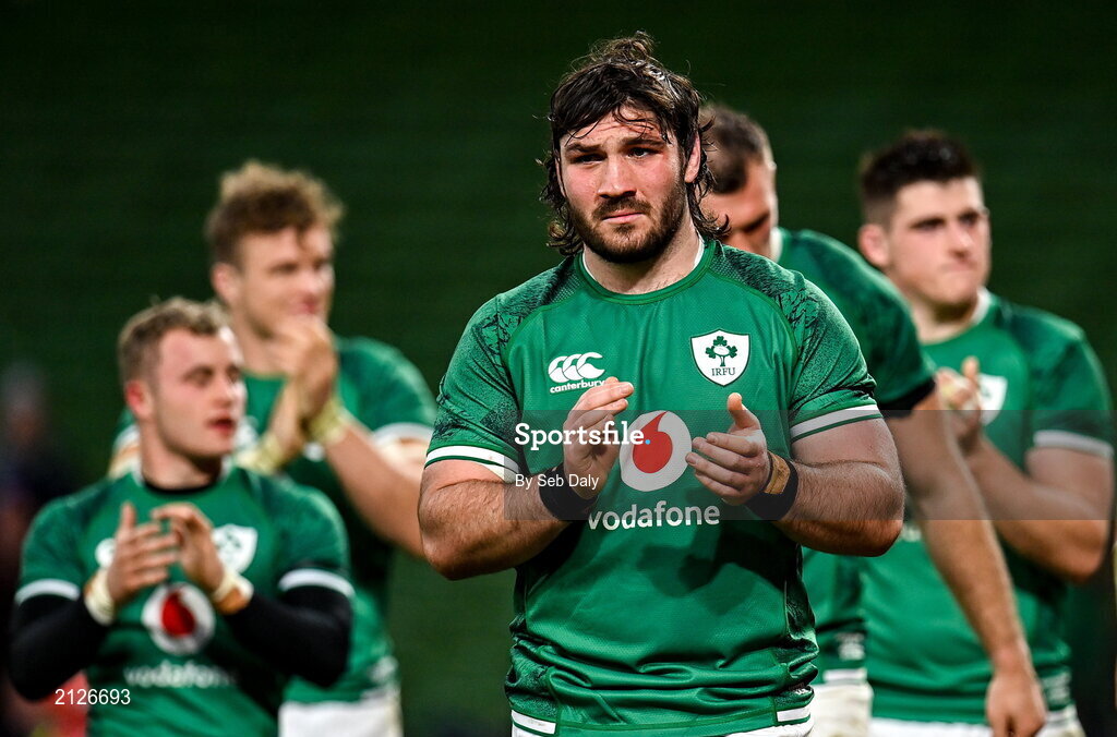 21 November 2021; Tom O’Toole of Ireland after his side's victory in the Autumn Nations Series match between Ireland and Argentina at Aviva Stadium in Dublin. Photo by Seb Daly/Sportsfile