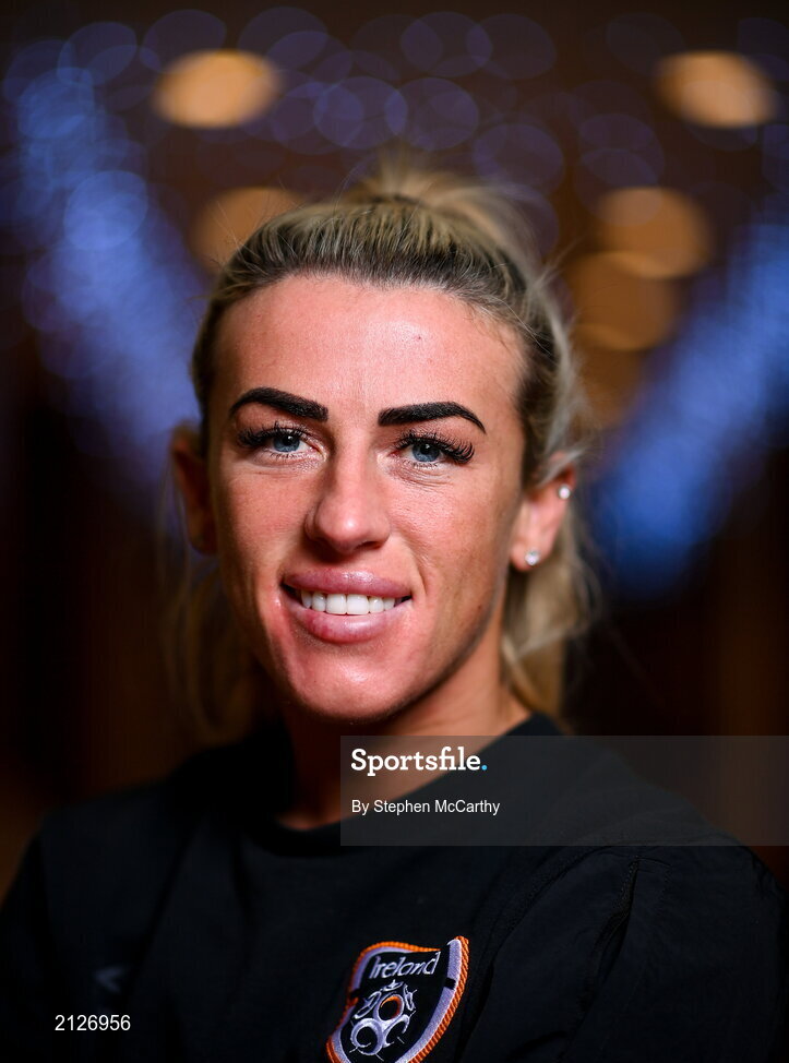 22 November 2021; Savannah McCarthy poses for a portrait during a Republic of Ireland Women media day at Castleknock Hotel in Dublin. Photo by Stephen McCarthy/Sportsfile