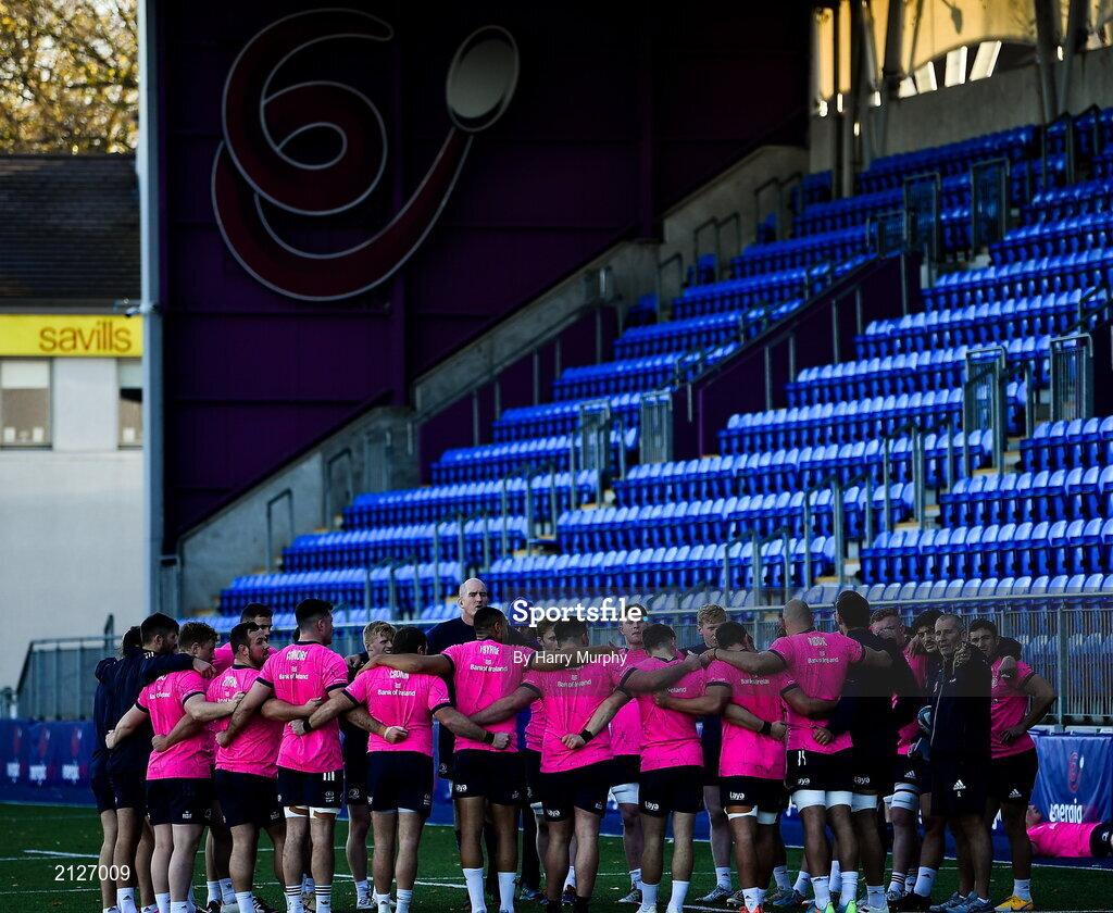 22 November 2021; Leinster players huddle during a Leinster Rugby squad training at Energia Park in Dublin. Photo by Harry Murphy/Sportsfile