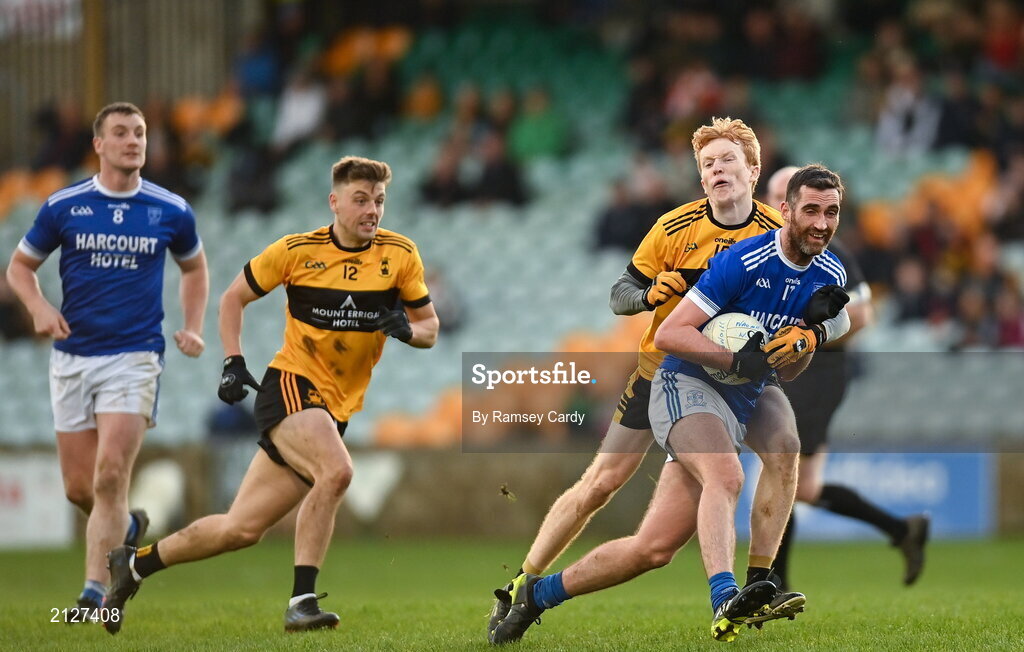 7 November 2021; Marty Boyle of Naomh Conaill is tackled by Eoin McGeehin of St Eunan's during the Donegal County Senior Club Football Championship Final match between St Eunan's and Naomh Conaill at MacCumhaill Park in Ballybofey, Donegal. Photo by Ramsey Cardy/Sportsfile