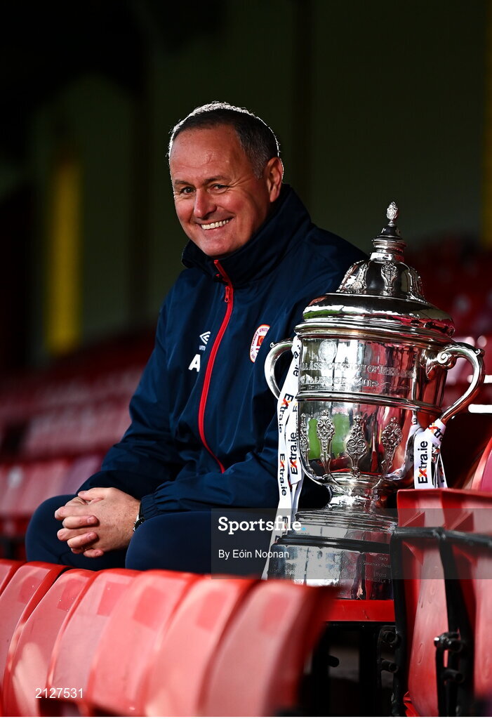 23 November 2021; St Patrick's Athletic manager Alan Mathews during the St Patrick's Athletic FAI Cup Final Media Day at Richmond Park in Dublin. Photo by Eóin Noonan/Sportsfile