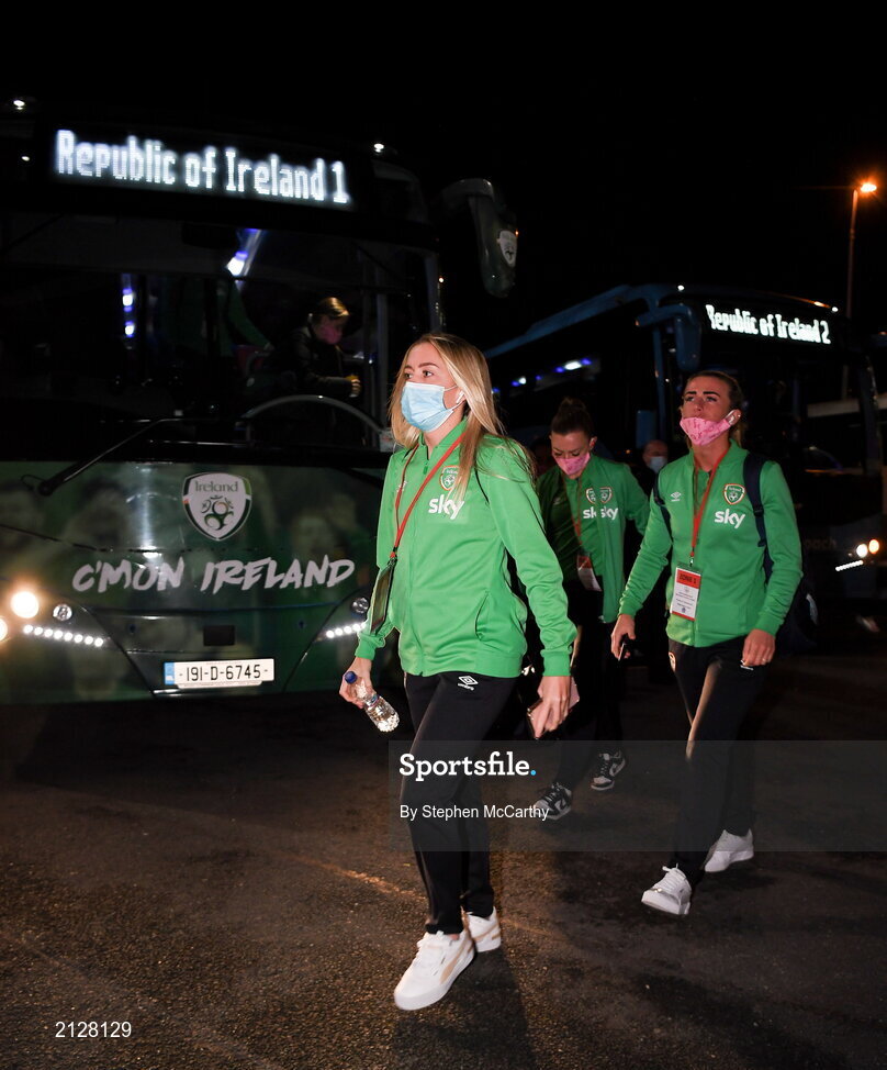 25 November 2021; Denise O'Sullivan of Republic of Ireland arrives before the FIFA Women's World Cup 2023 qualifying group A match between Republic of Ireland and Slovakia at Tallaght Stadium in Dublin. Photo by Stephen McCarthy/Sportsfile