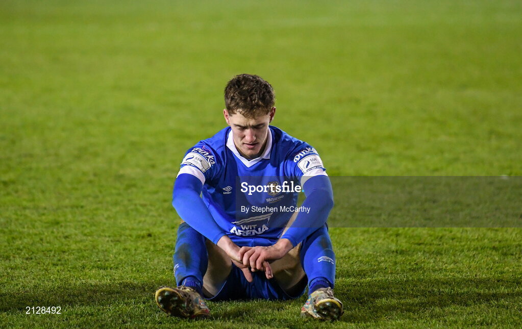 26 November 2021; John Martin of Waterford dejected after his side's defeat in the SSE Airtricity League Promotion / Relegation Play-off Final between UCD and Waterford at Richmond Park in Dublin. Photo by Stephen McCarthy/Sportsfile
