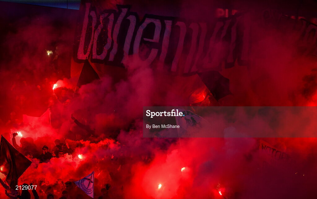 28 November 2021; Bohemians supporters before the Extra.ie FAI Cup Final match between Bohemians and St Patrick's Athletic at Aviva Stadium in Dublin. Photo by Ben McShane/Sportsfile