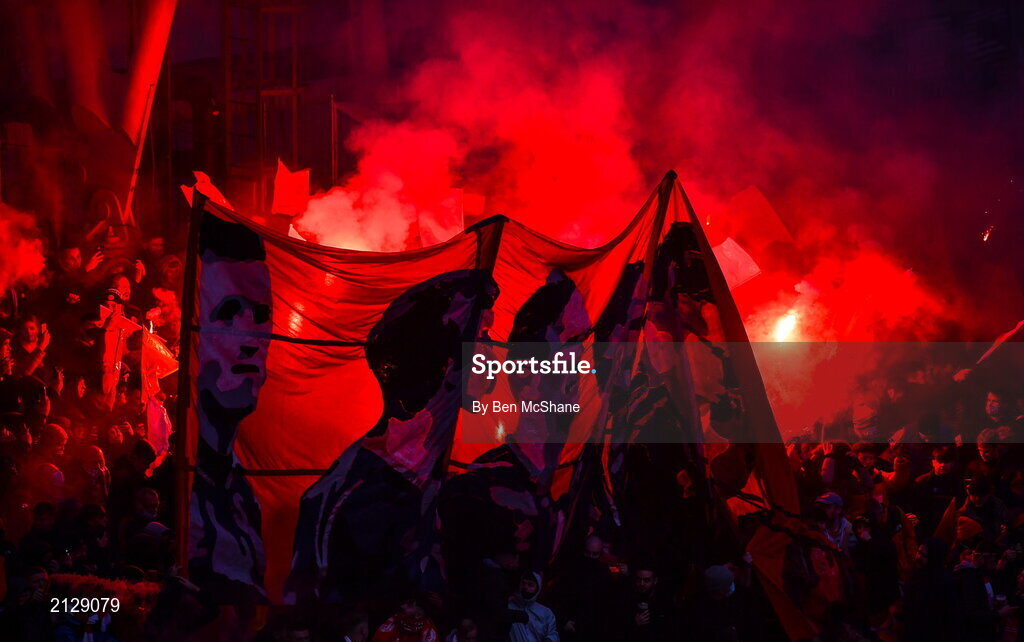 28 November 2021; St Patrick's Athletic supporters before the Extra.ie FAI Cup Final match between Bohemians and St Patrick's Athletic at Aviva Stadium in Dublin. Photo by Ben McShane/Sportsfile