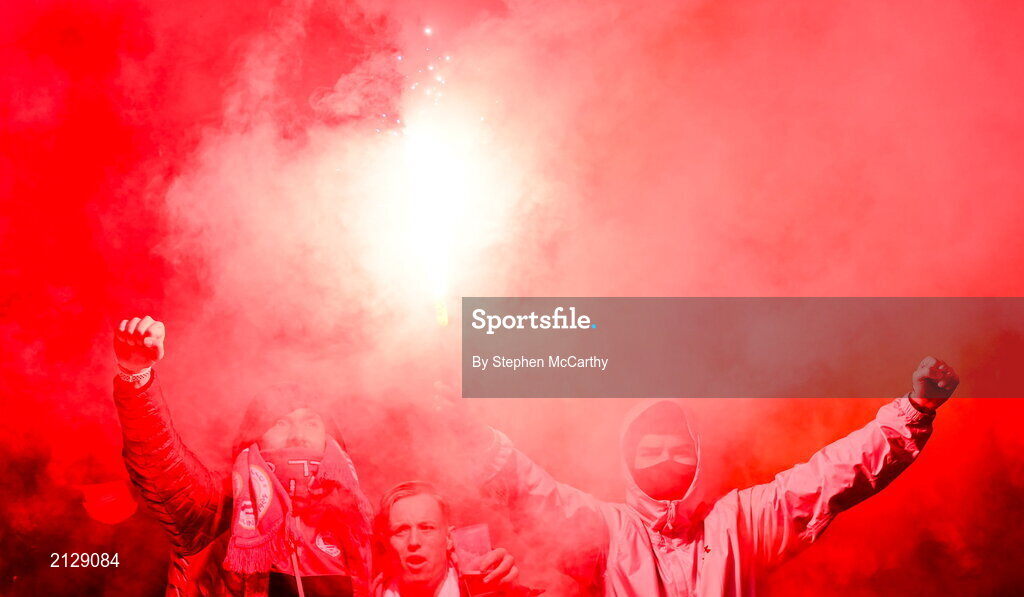28 November 2021; St Patrick's Athletic supporters during the Extra.ie FAI Cup Final match between Bohemians and St Patrick's Athletic at Aviva Stadium in Dublin. Photo by Stephen McCarthy/Sportsfile