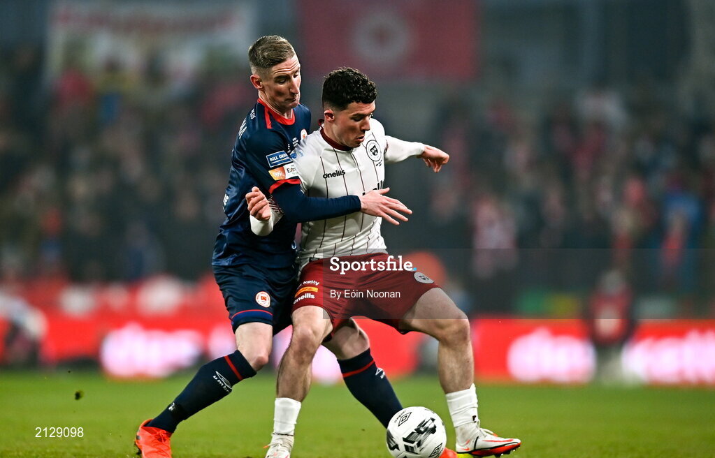 28 November 2021; Ali Coote of Bohemians in action against Ian Bermingham of St Patrick's Athletic during the Extra.ie FAI Cup Final match between Bohemians and St Patrick's Athletic at Aviva Stadium in Dublin. Photo by Eóin Noonan/Sportsfile