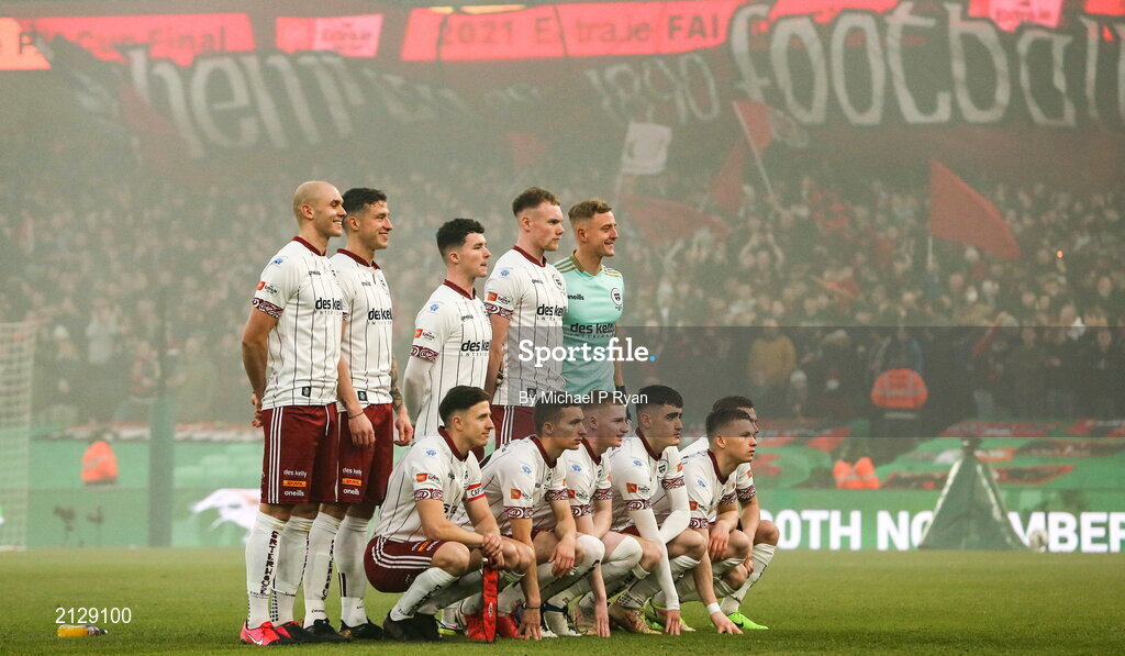 28 November 2021; Bohemians players line up for the team photo during the Extra.ie FAI Cup Final match between Bohemians and St Patrick's Athletic at Aviva Stadium in Dublin. Photo by Michael P Ryan/Sportsfile