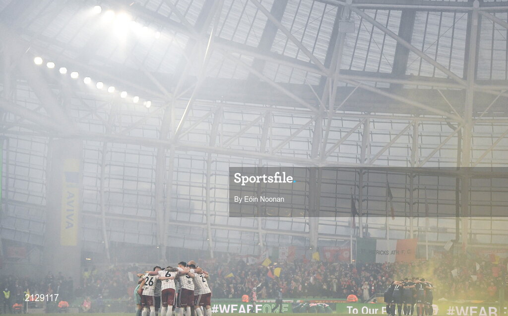 28 November 2021; The Bohemians and St Patrick's Athletic teams before the Extra.ie FAI Cup Final match between Bohemians and St Patrick's Athletic at the Aviva Stadium in Dublin. Photo by Eóin Noonan/Sportsfile