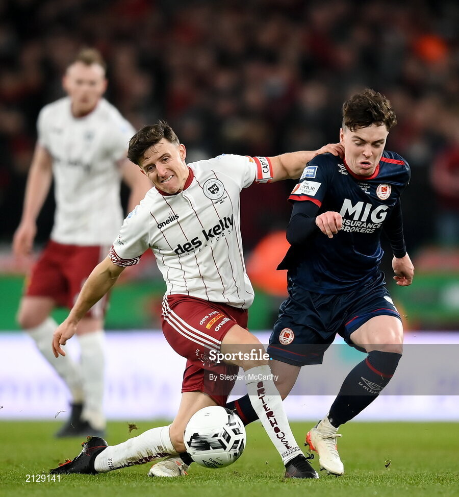 28 November 2021; Keith Buckley of Bohemians and Alfie Lewis of St Patrick's Athletic during the Extra.ie FAI Cup Final match between Bohemians and St Patrick's Athletic at Aviva Stadium in Dublin. Photo by Stephen McCarthy/Sportsfile