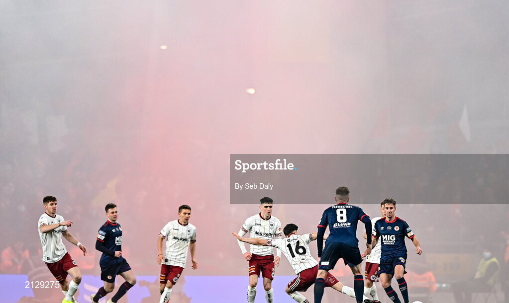 28 November 2021; Billy King of St Patrick's Athletic in action against Alfie Lewis of St Patrick's Athletic during the Extra.ie FAI Cup Final match between Bohemians and St Patrick's Athletic at Aviva Stadium in Dublin. Photo by Seb Daly/Sportsfile