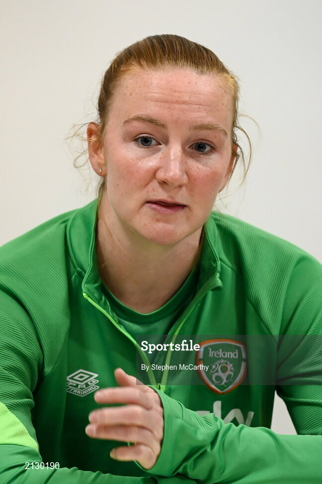 29 November 2021; Goalkeeper Courtney Brosnan during a Republic of Ireland Women press conference at Tallaght Stadium in Dublin. Photo by Stephen McCarthy/Sportsfile