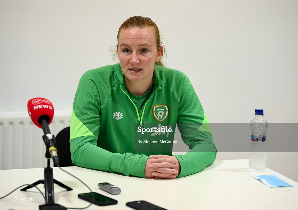29 November 2021; Goalkeeper Courtney Brosnan during a Republic of Ireland Women press conference at Tallaght Stadium in Dublin. Photo by Stephen McCarthy/Sportsfile