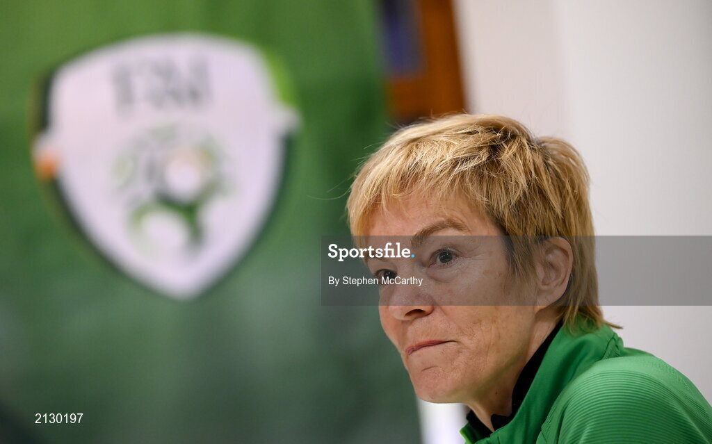 29 November 2021; Manager Vera Pauw during a Republic of Ireland Women press conference at Tallaght Stadium in Dublin. Photo by Stephen McCarthy/Sportsfile