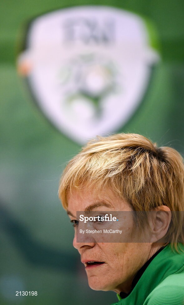 29 November 2021; Manager Vera Pauw during a Republic of Ireland Women press conference at Tallaght Stadium in Dublin. Photo by Stephen McCarthy/Sportsfile
