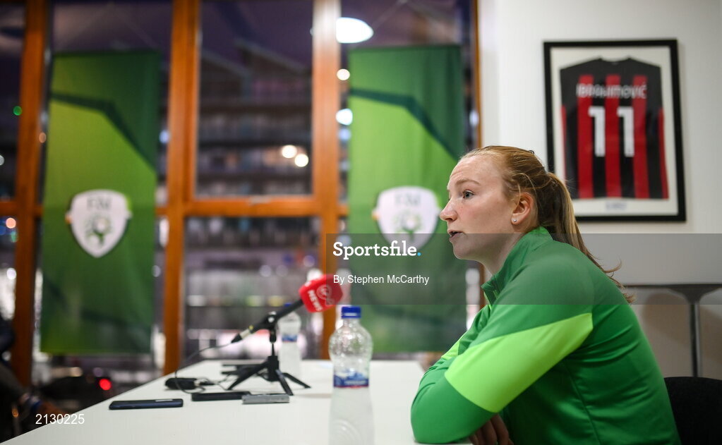 29 November 2021; Goalkeeper Courtney Brosnan during a Republic of Ireland Women press conference at Tallaght Stadium in Dublin. Photo by Stephen McCarthy/Sportsfile