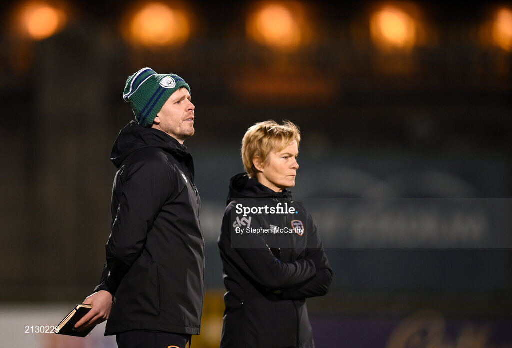 29 November 2021; Assistant manager Tom Elms with Manager Vera Pauw during a Republic of Ireland Women training session at Tallaght Stadium in Dublin. Photo by Stephen McCarthy/Sportsfile