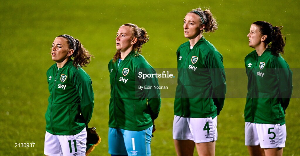 30 November 2021; Republic of Ireland players, from left, Katie McCabe, Courtney BrosnanLouise Quinn, Niamh Fahey during the FIFA Women's World Cup 2023 qualifying group A match between Republic of Ireland and Georgia at Tallaght Stadium in Dublin. Photo by Eóin Noonan/Sportsfile