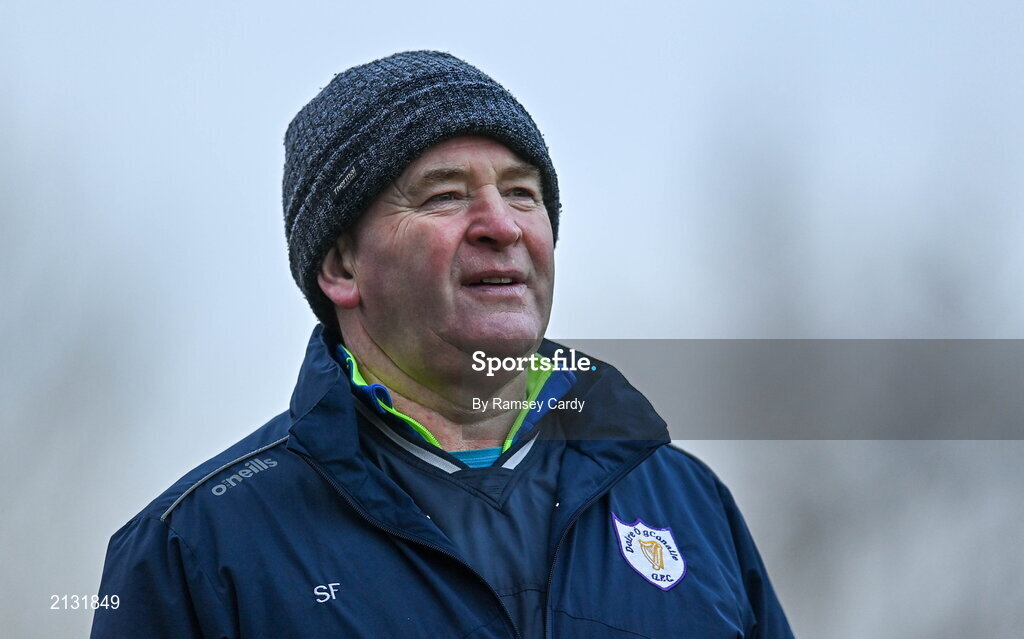 4 December 2021; Derrygonnelly Harps manager Sean Flanagan during the AIB Ulster GAA Football Senior Club Championship Quarter-Final match between Dromore and Derrygonnelly Harps at Páirc Colmcille in Carrickmore, Tyrone. Photo by Ramsey Cardy/Sportsfile