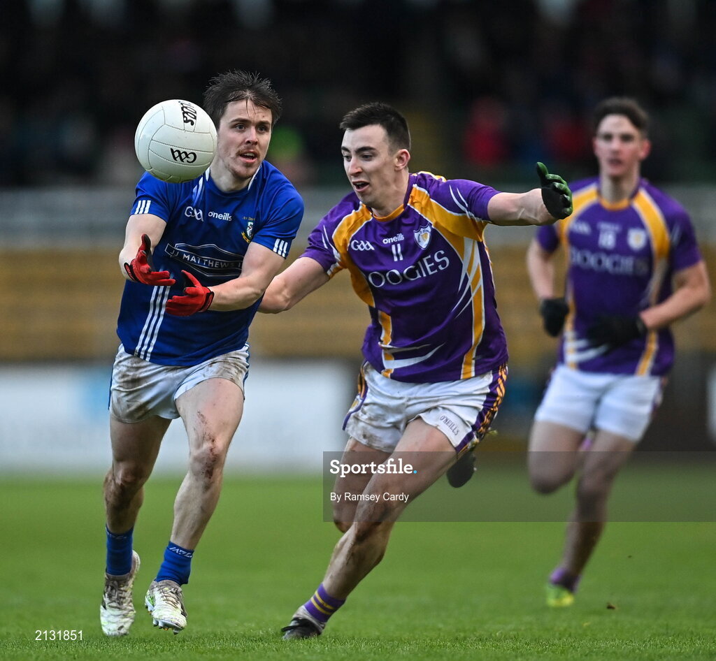 4 December 2021; Ronan McNabb of Dromore in action against Garvan Jones of Derrygonnelly Harps during the AIB Ulster GAA Football Senior Club Championship Quarter-Final match between Dromore and Derrygonnelly Harps at Páirc Colmcille in Carrickmore, Tyrone. Photo by Ramsey Cardy/Sportsfile