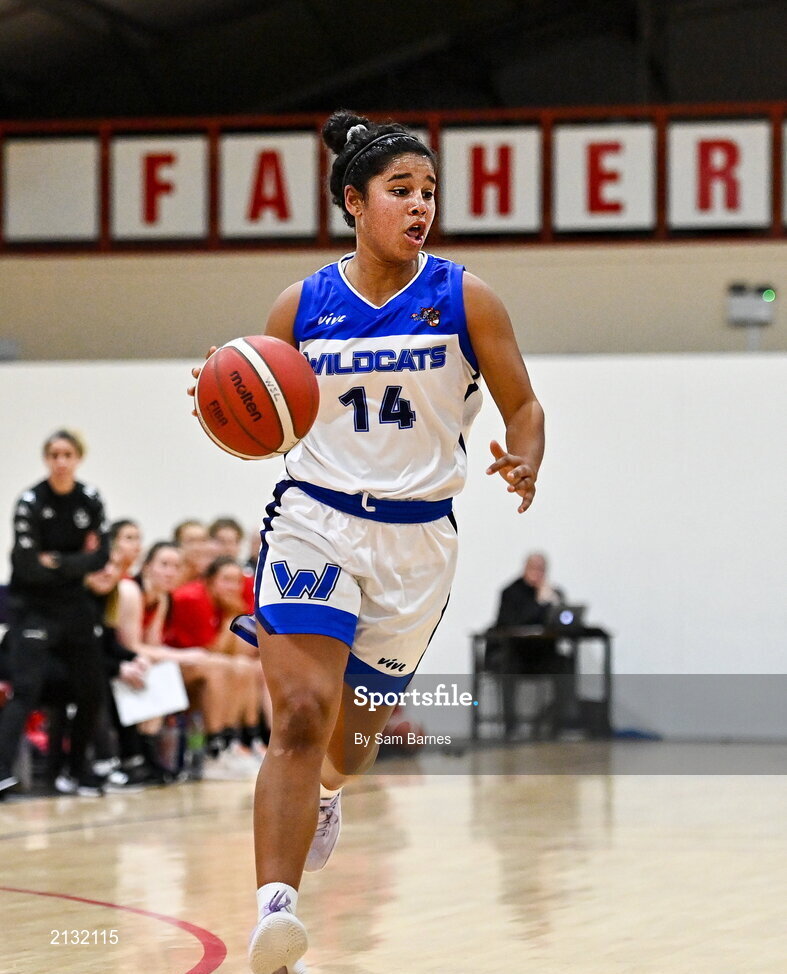 4 December 2021; Rachel Thompson of WIT Waterford Wildcats during the InsureMyHouse.ie Paudie O’Connor Cup Quarter-Final match between Fr. Mathews and WIT Waterford Wildcats at Fr. Mathews Arena in Cork. Photo by Sam Barnes/Sportsfile
