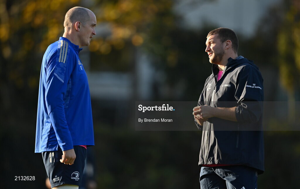 6 December 2021; Devin Toner, left, and Ross Molony during Leinster Rugby squad training at UCD in Dublin. Photo by Brendan Moran/Sportsfile