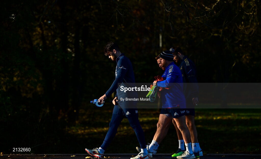 6 December 2021; Leinster players Harry Byrne, Rory O'Loughlin, Seán Cronin and Ross Byrne arrive for squad training at UCD in Dublin. Photo by Brendan Moran/Sportsfile