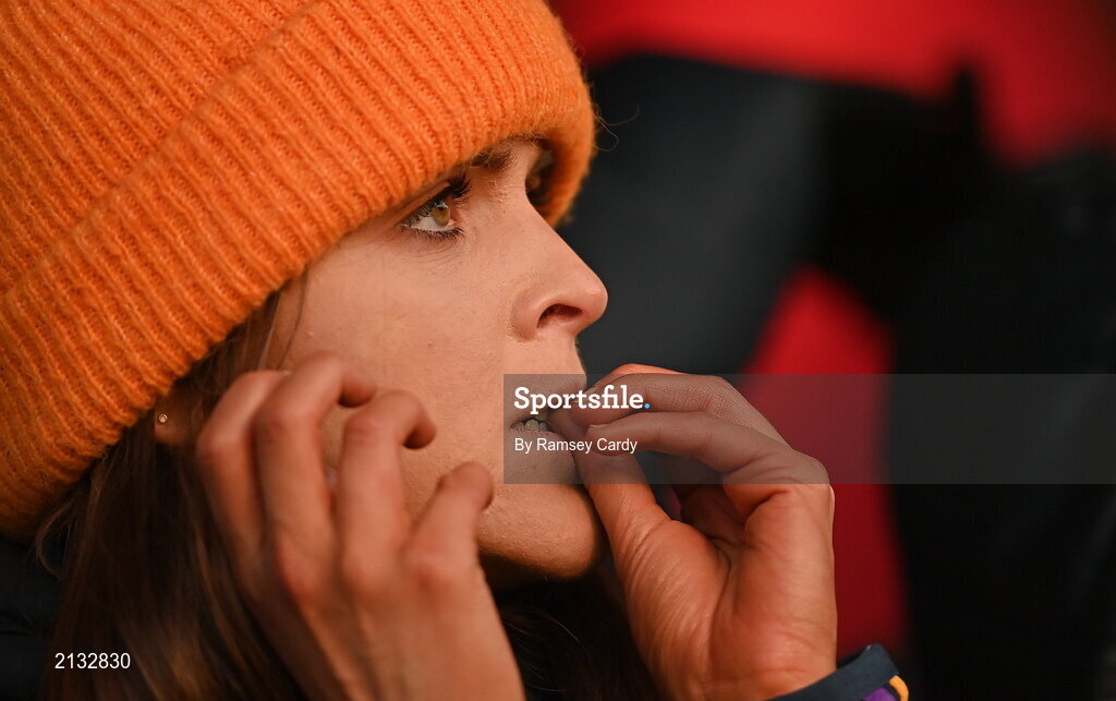 4 December 2021; A Derrygonnelly Harps supporter watches on in the final moments of the AIB Ulster GAA Football Senior Club Championship Quarter-Final match between Dromore and Derrygonnelly Harps at Páirc Colmcille in Carrickmore, Tyrone. Photo by Ramsey Cardy/Sportsfile