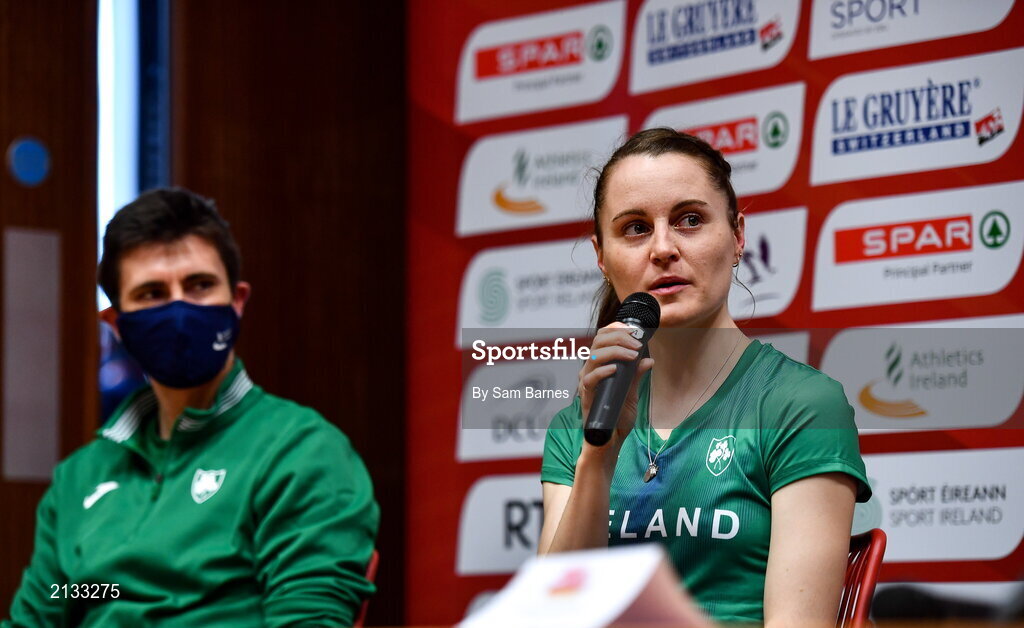 11 December 2021; Ciara Mageean of Ireland speaking during a press conference ahead of the SPAR European Cross Country Championships Fingal-Dublin 2021 at the Sport Ireland Campus in Dublin. Photo by Sam Barnes/Sportsfile