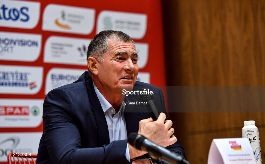 11 December 2021; Dobromir Karamarinov, European Athletics President, speaking during a press conference ahead of the SPAR European Cross Country Championships Fingal-Dublin 2021 at the Sport Ireland Campus in Dublin. Photo by Sam Barnes/Sportsfile